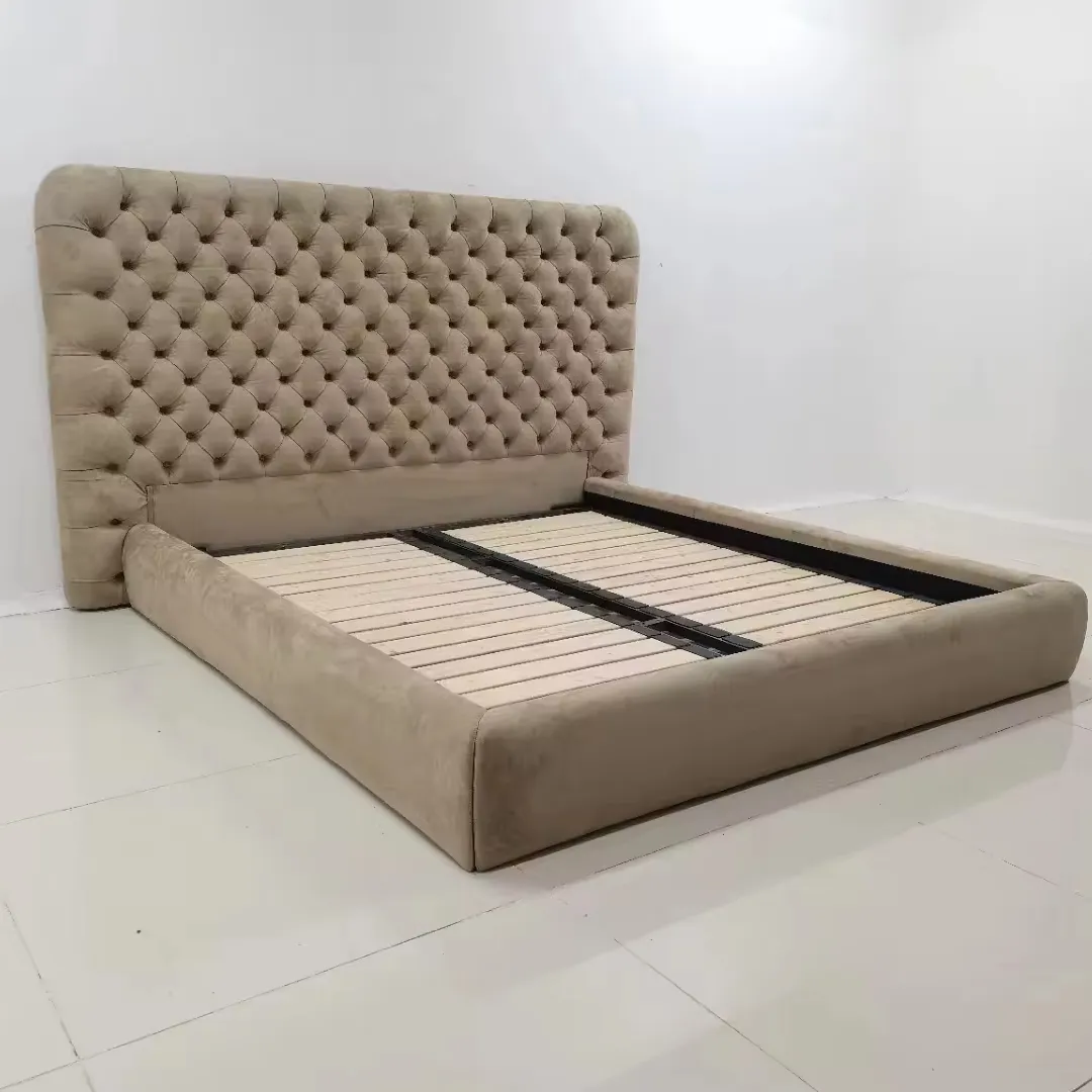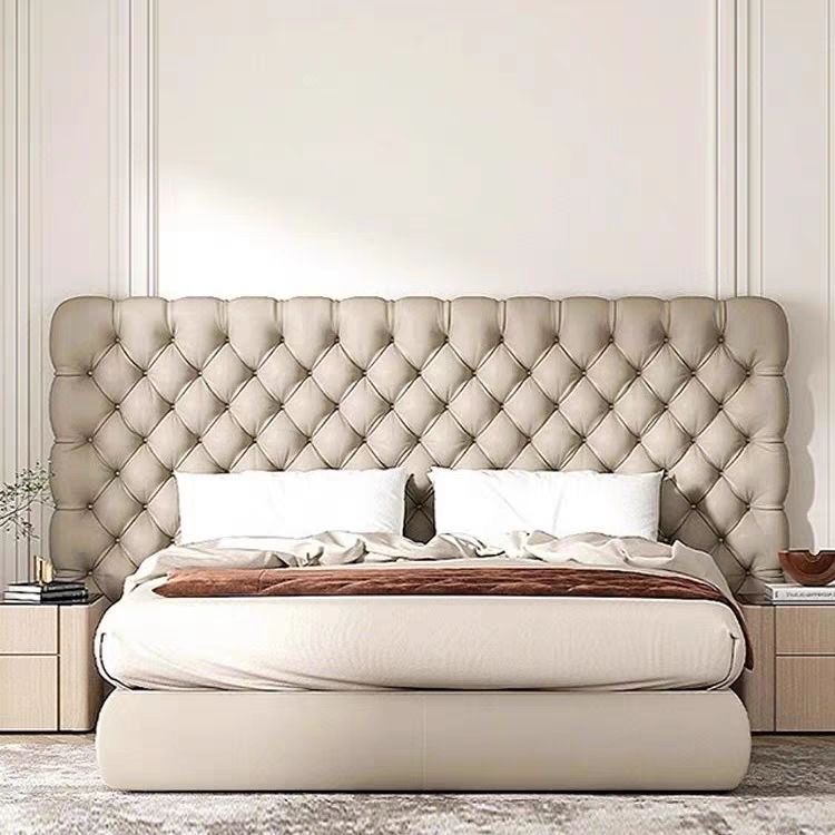 Italian Nordic Luxury buckle large headboard bed