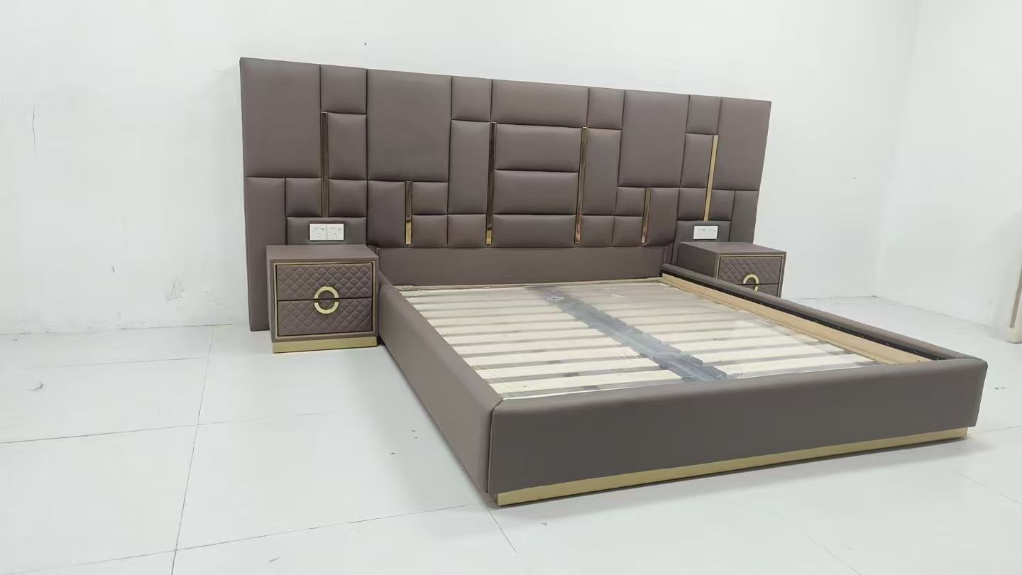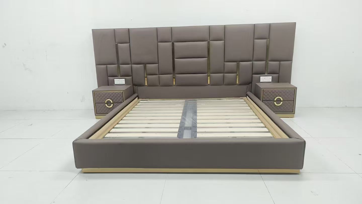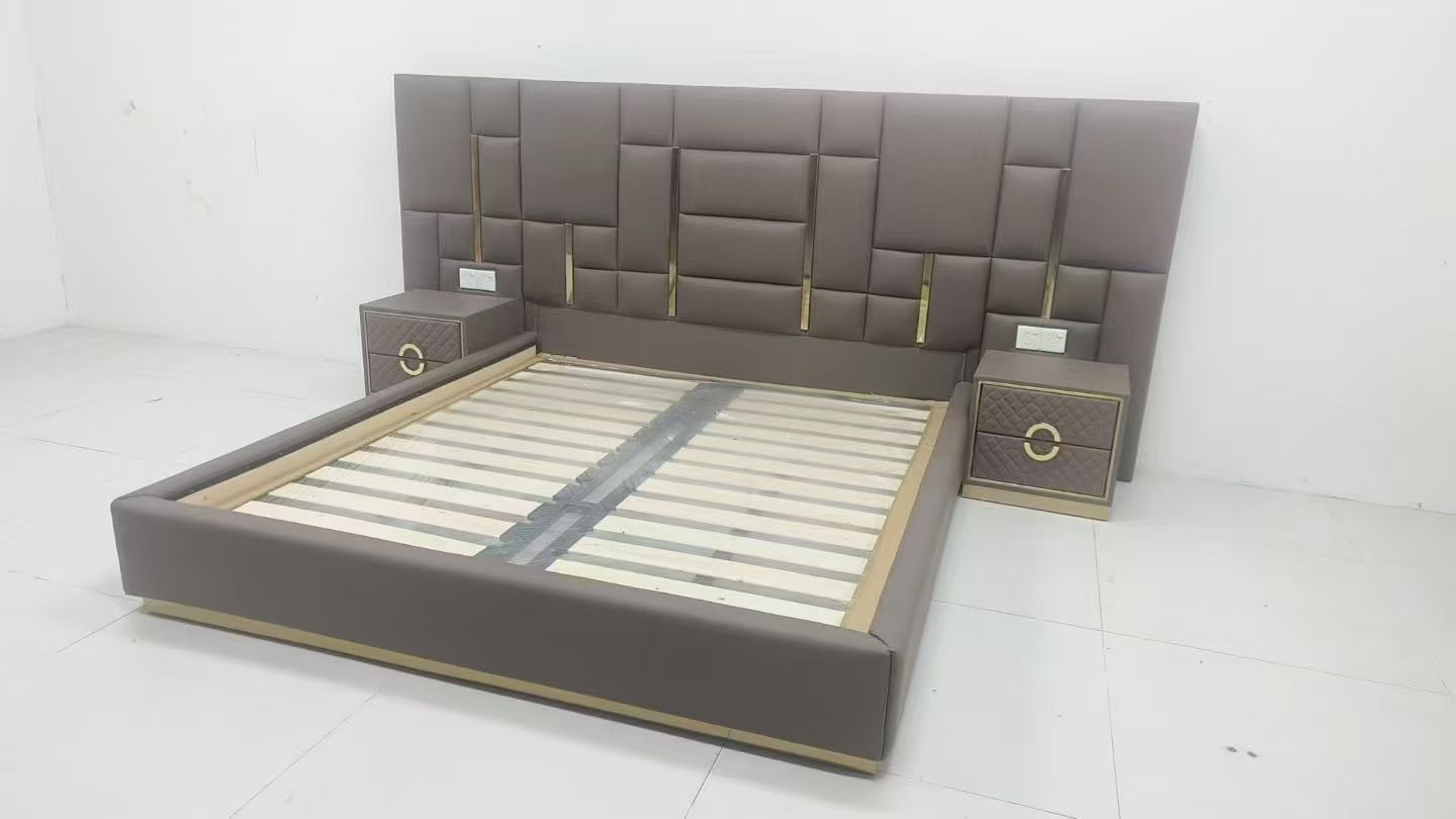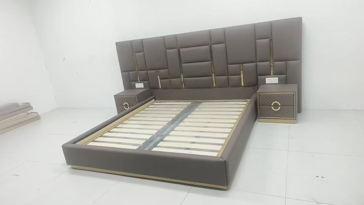 CEO Luxury Factory Furniture Bedroom Furniture King Size Bed Villa House Bed Double Head Modern Italian Genuine Leather Bed