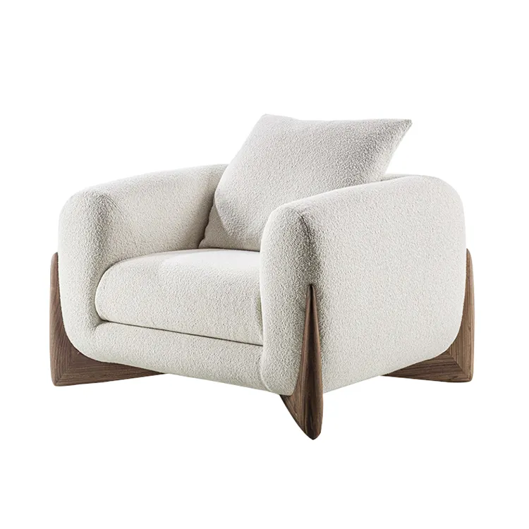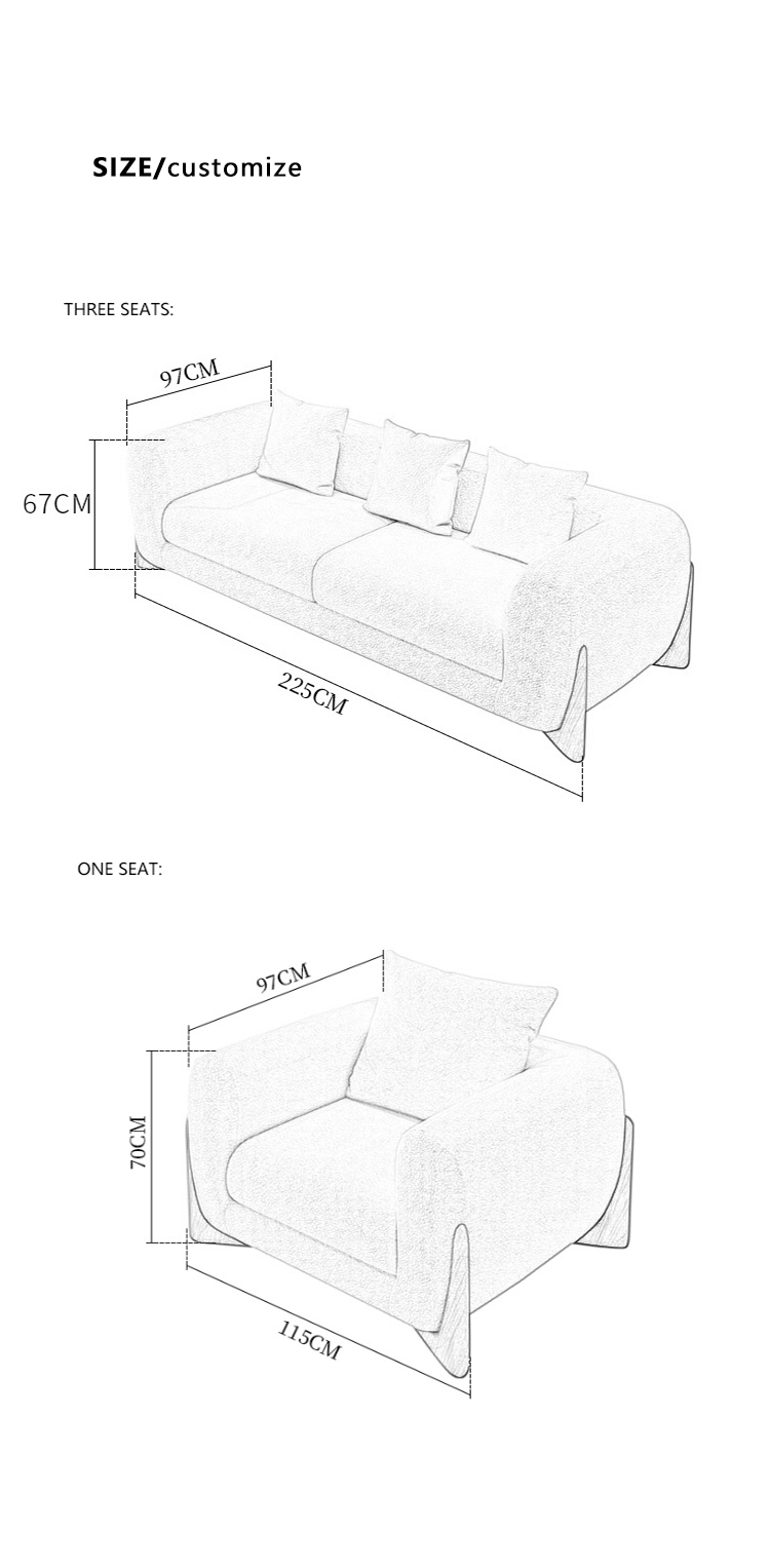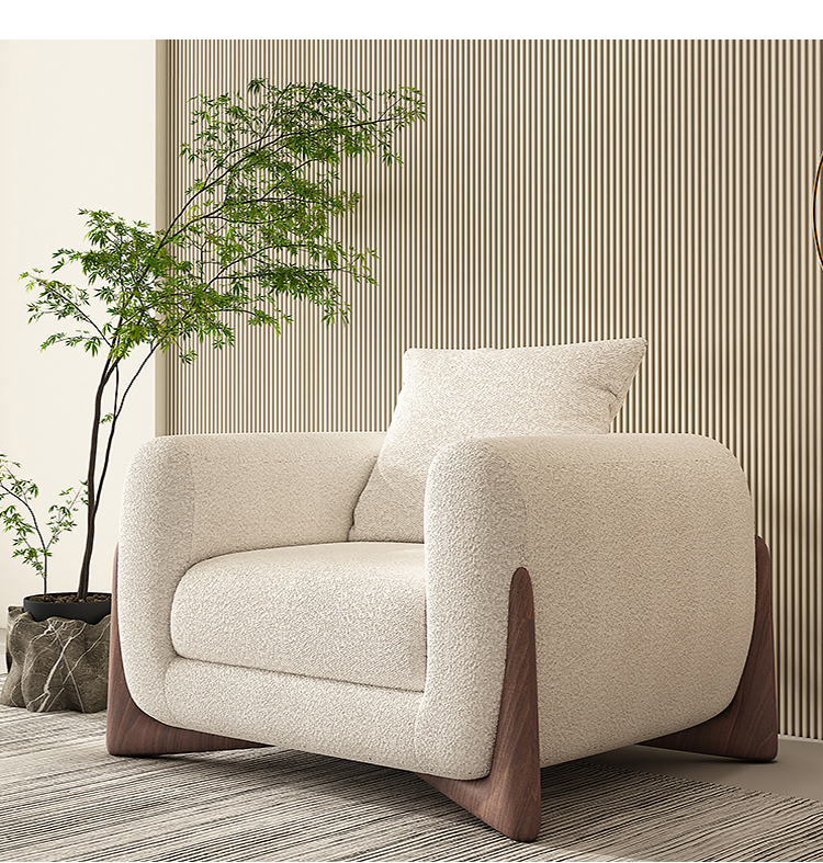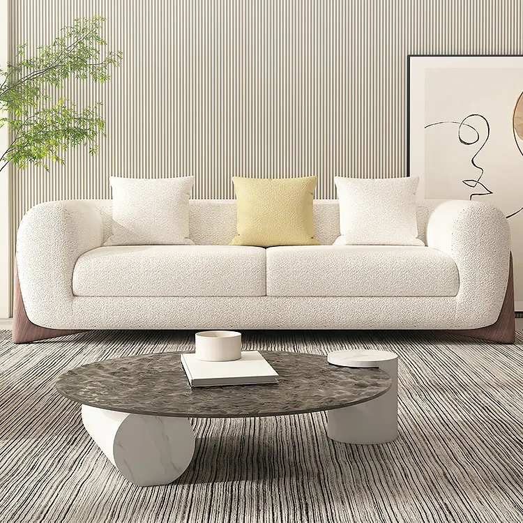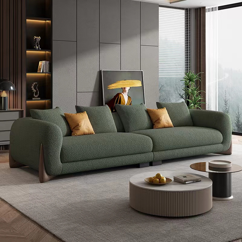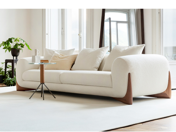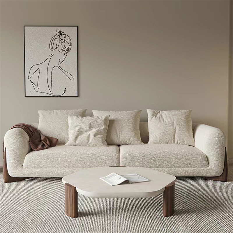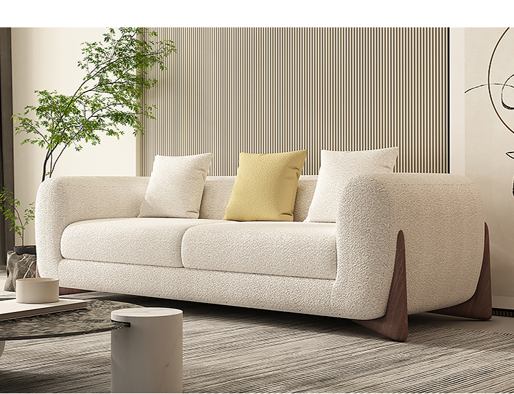 Italian minimalist fabric sofa small living room modern latex solid wood cream style lamb wool sofa