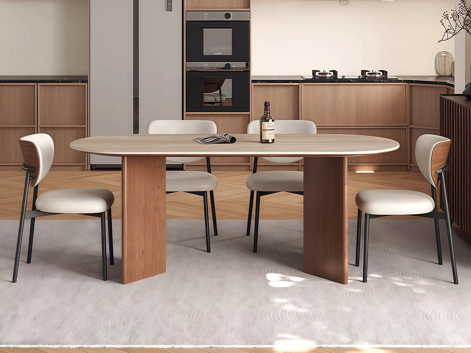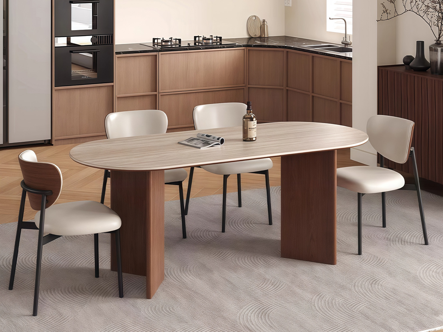 CEO Furniture Factory French Retro Solid Wood Leg Dining Table Set Small Apartment Oval Cave Stone Rock Plate Dining Table
