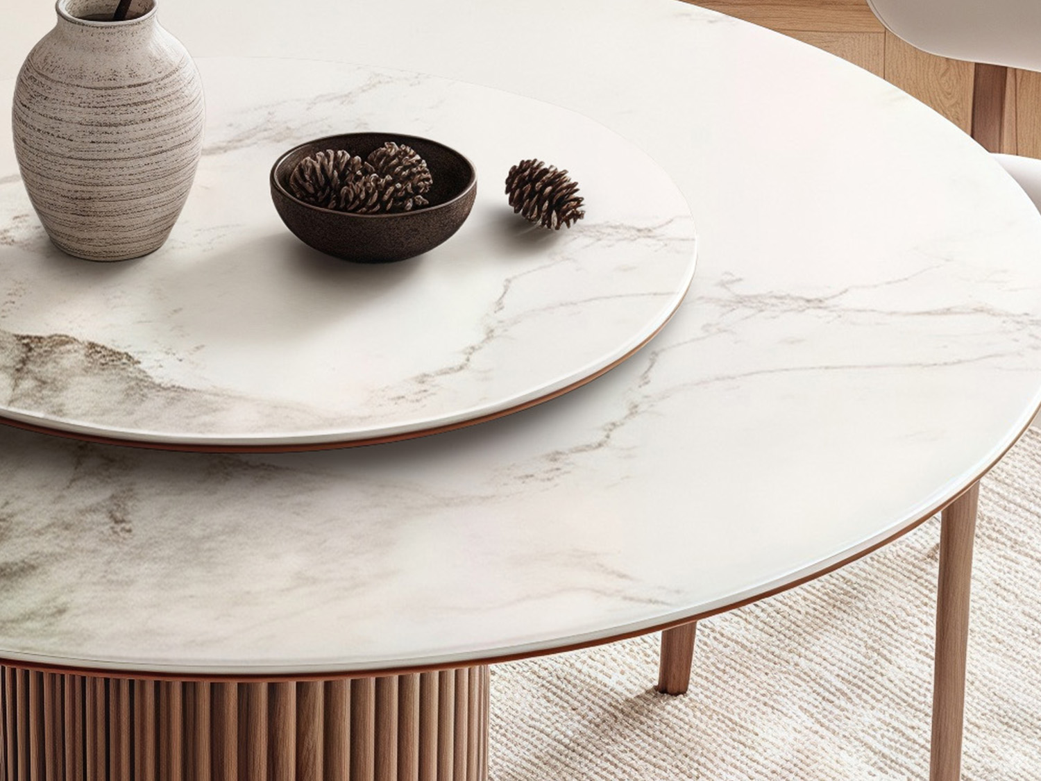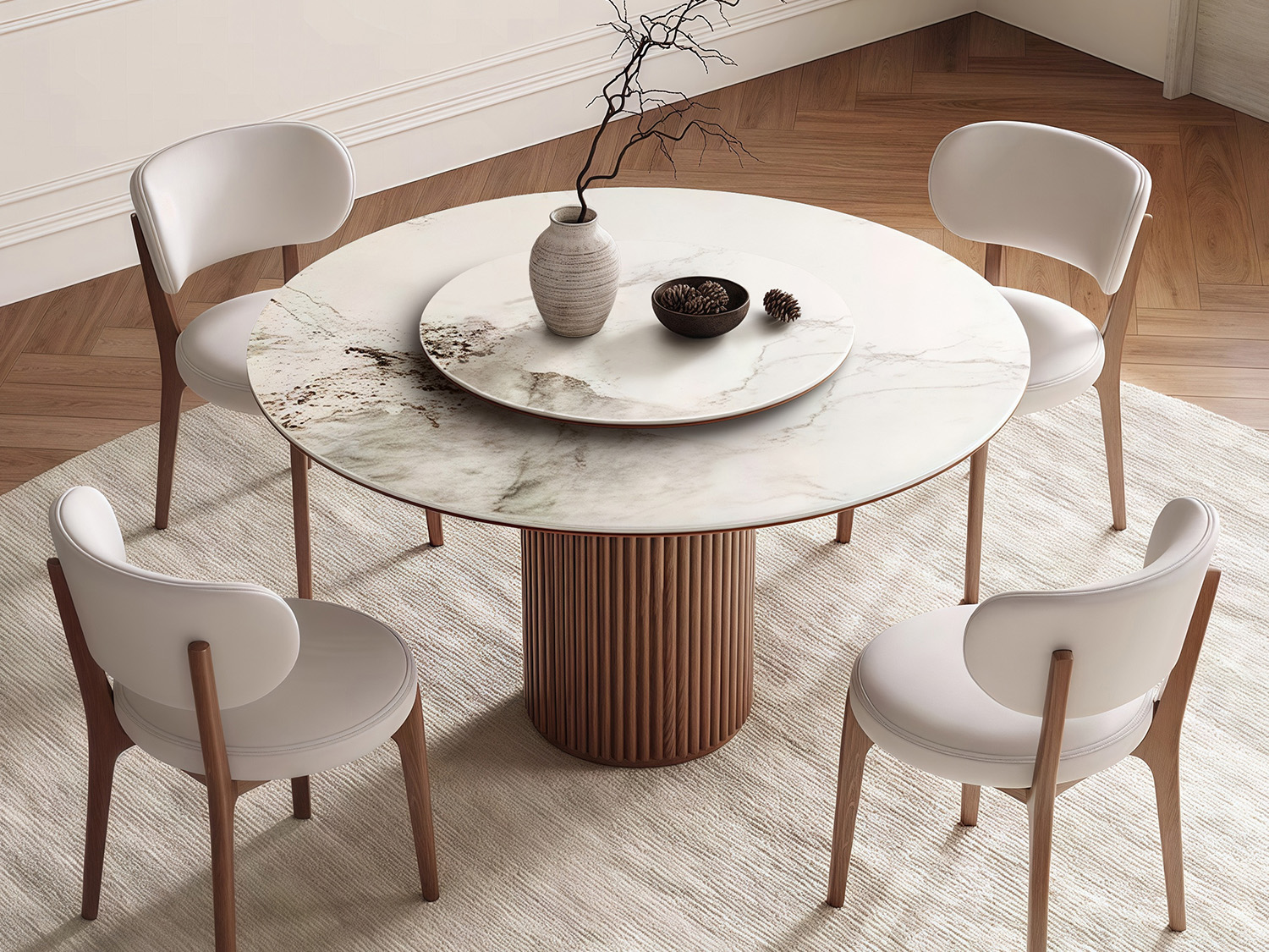 Nordic simple dining room wood frame dining table designer style luxury hotel villa round walnut dining table and chair set