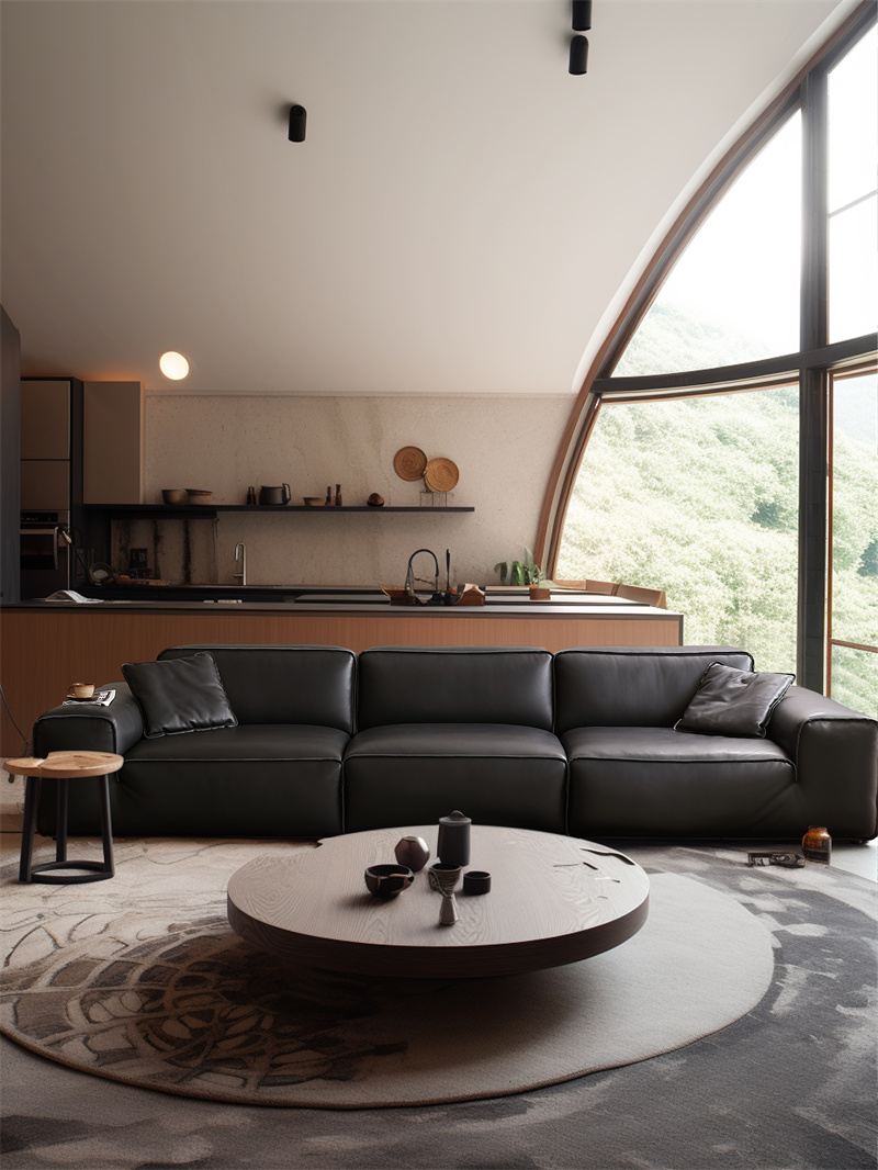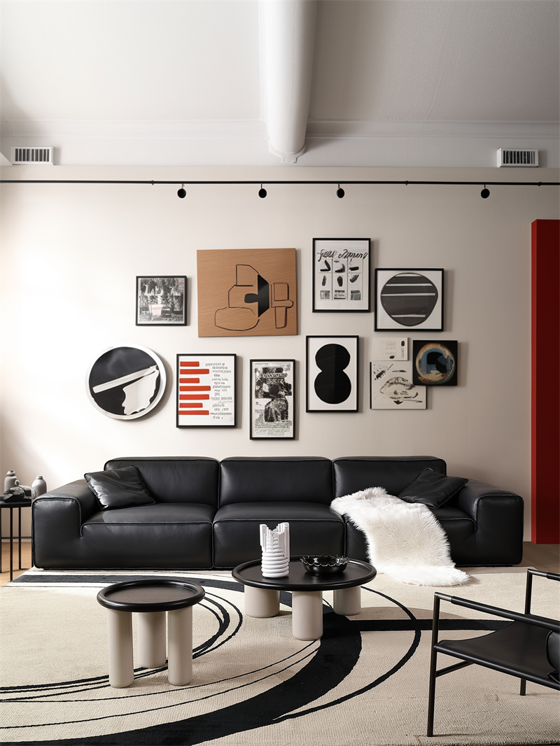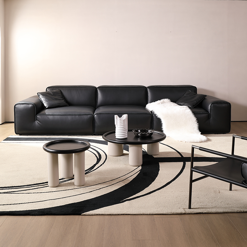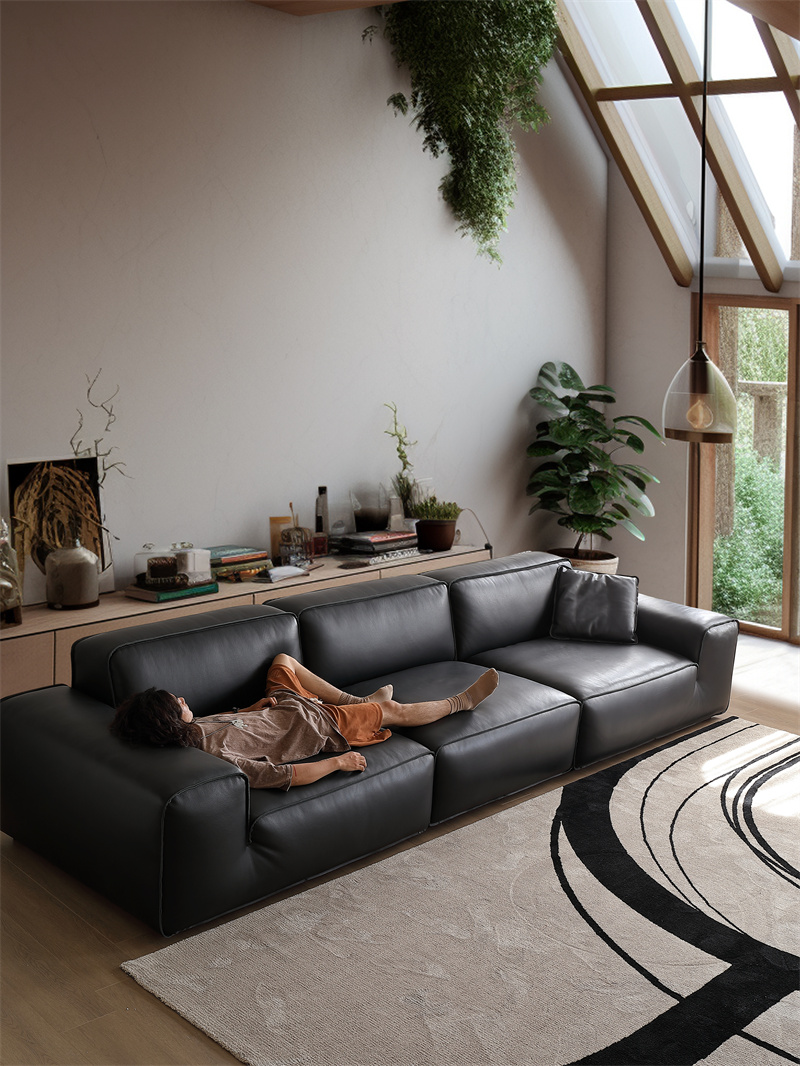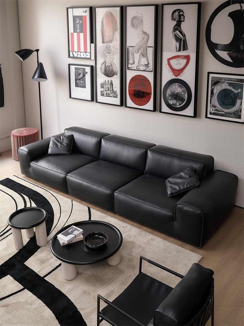 Custom Luxury leather sofa combination leisure suite sofa set living room furniture living room light luxury leather sofa modern sectional big black