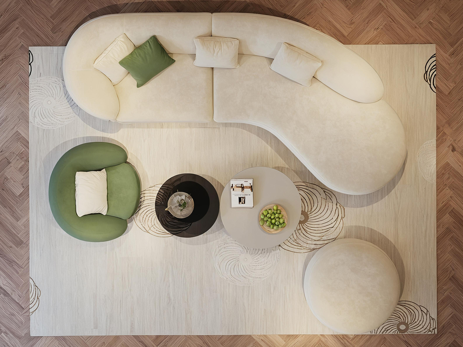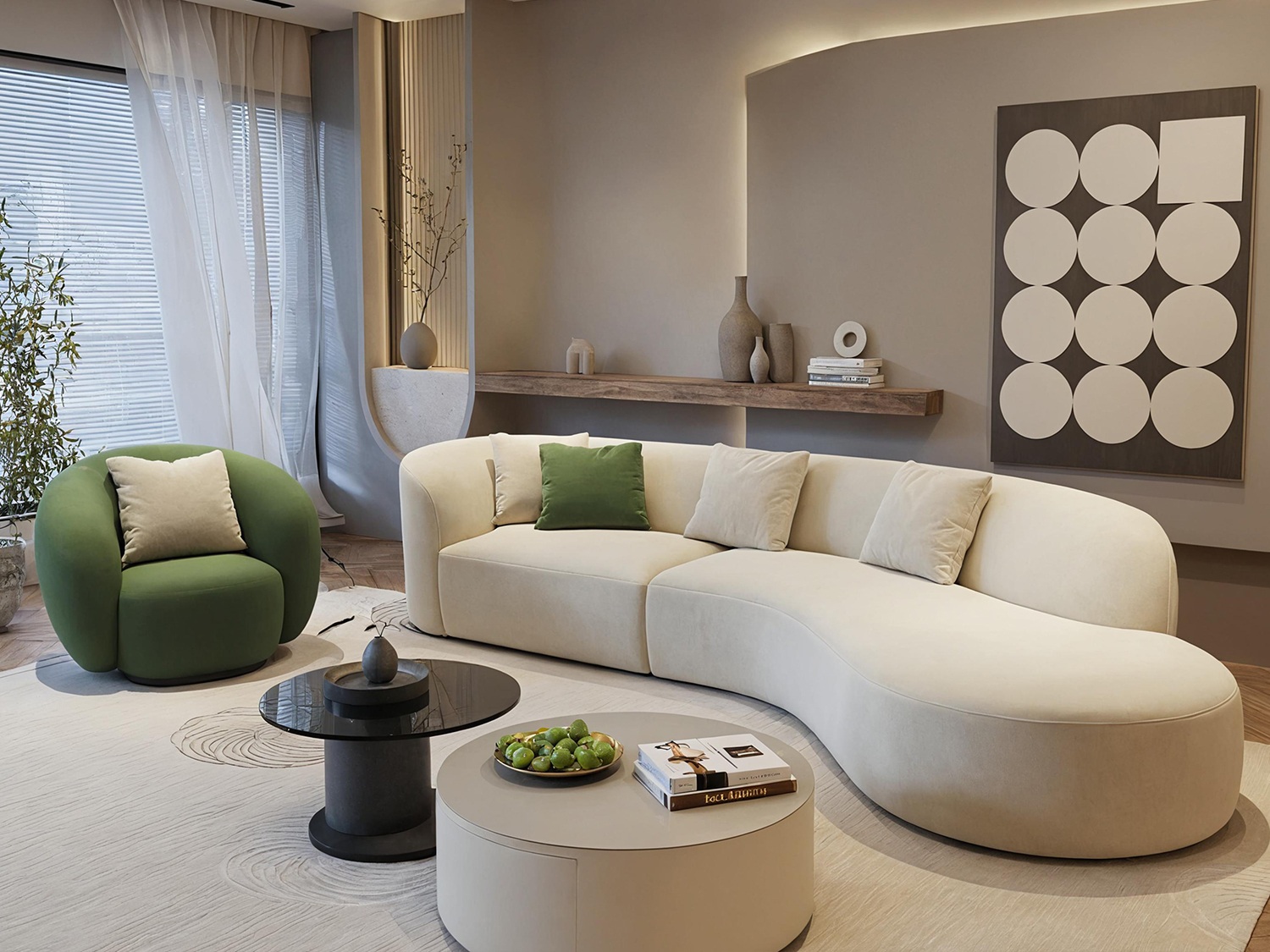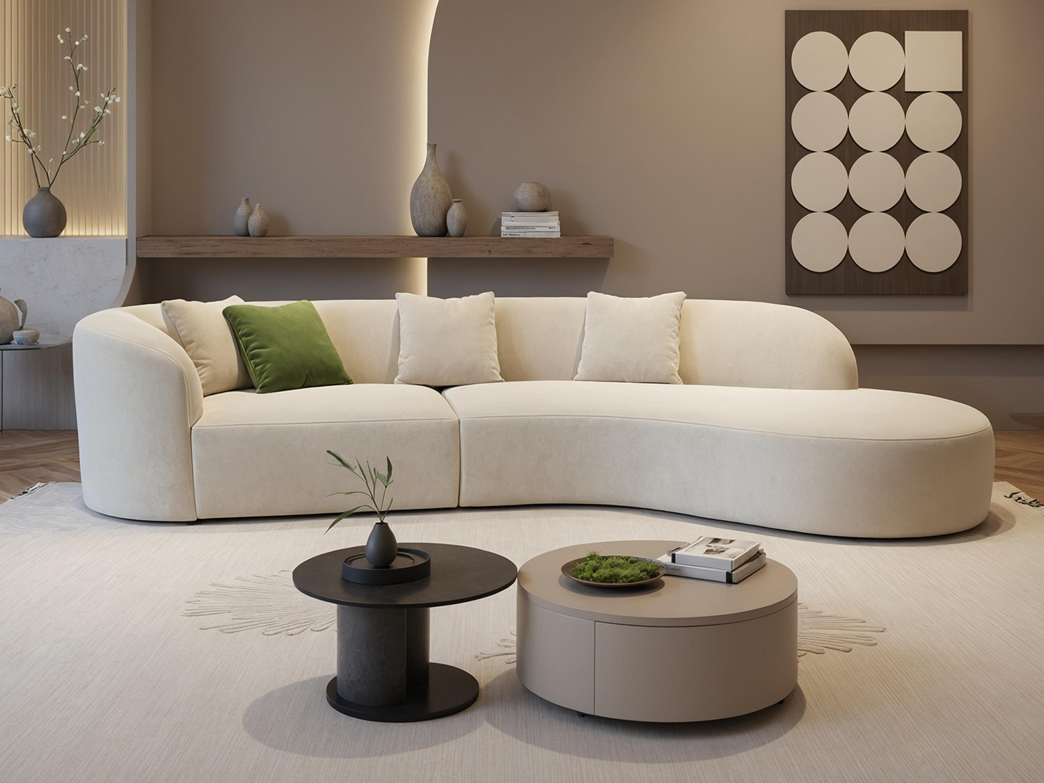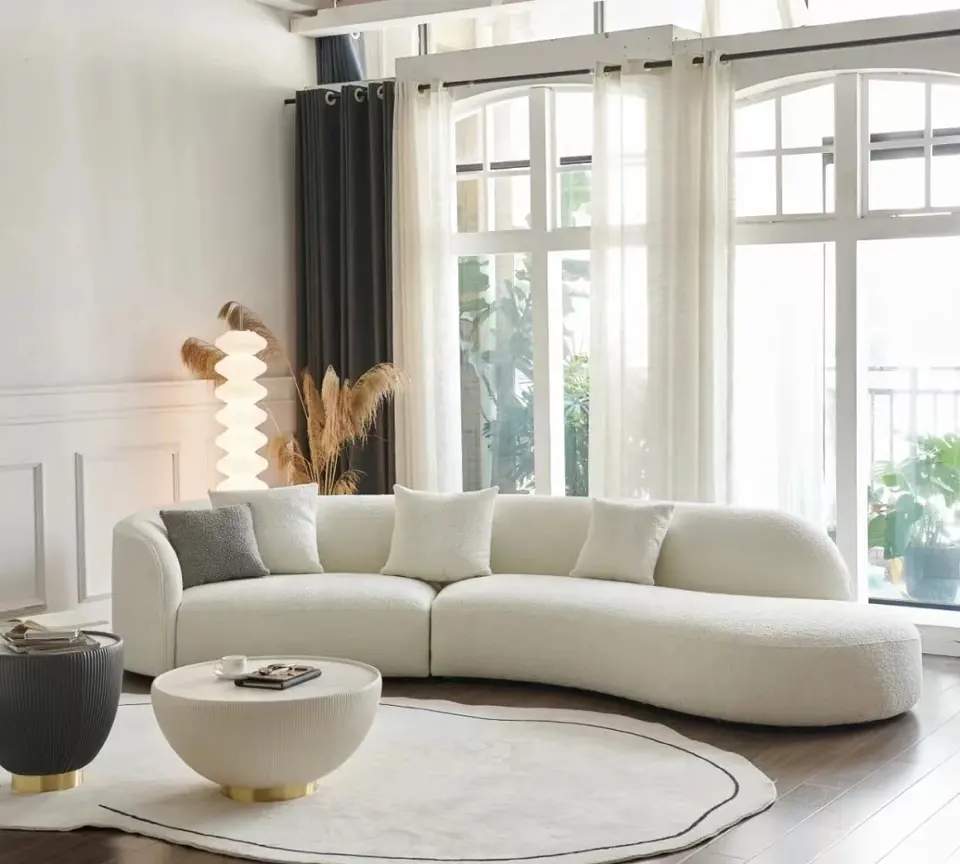 Luxury Modern Style Living Room Interior Curved Sofa & Lounge Chair Set Sofa Set Furniture Living Room