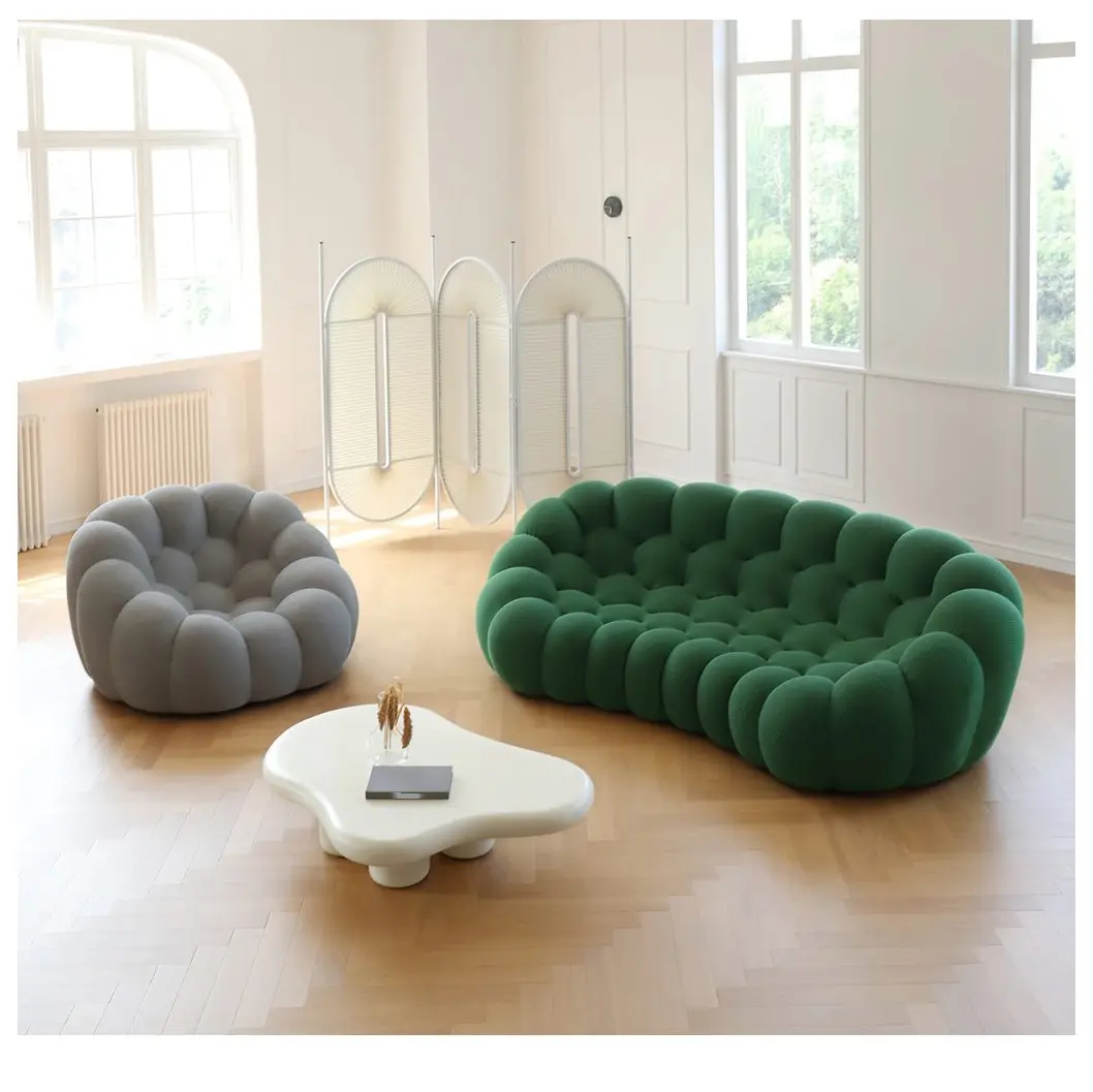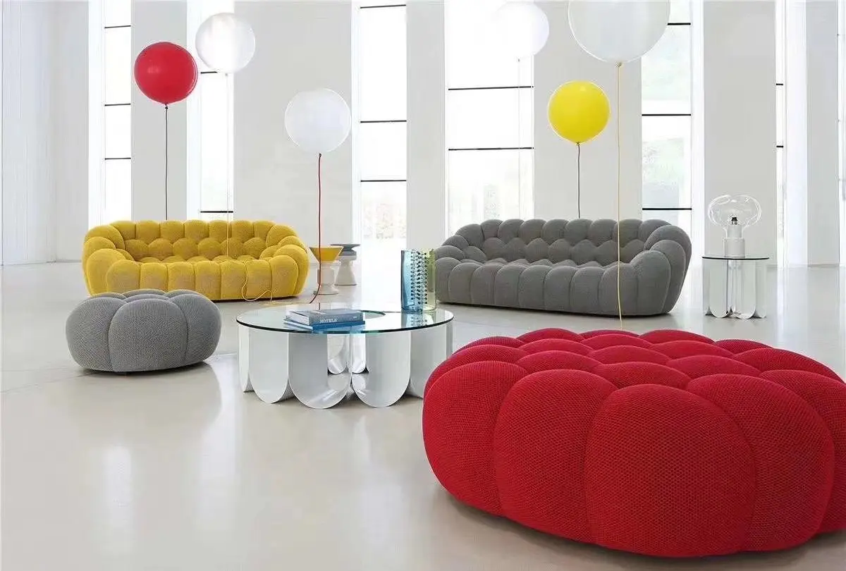 2. Colorful Options Fabric Lounge Couch Custom 1/2/3 Seater Bright Color Curved Round Bubble Sofa Armchair