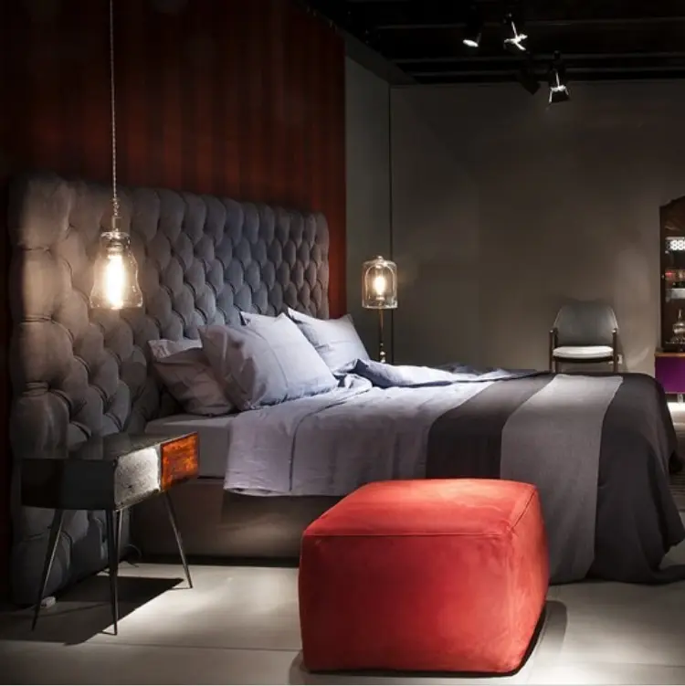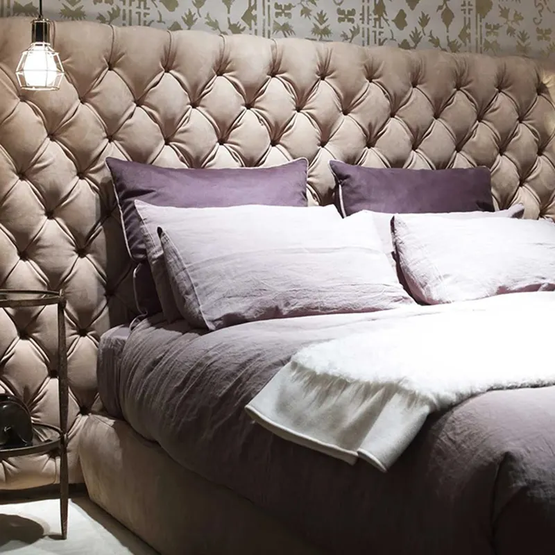 Italian Nordic Luxury buckle large headboard bed
