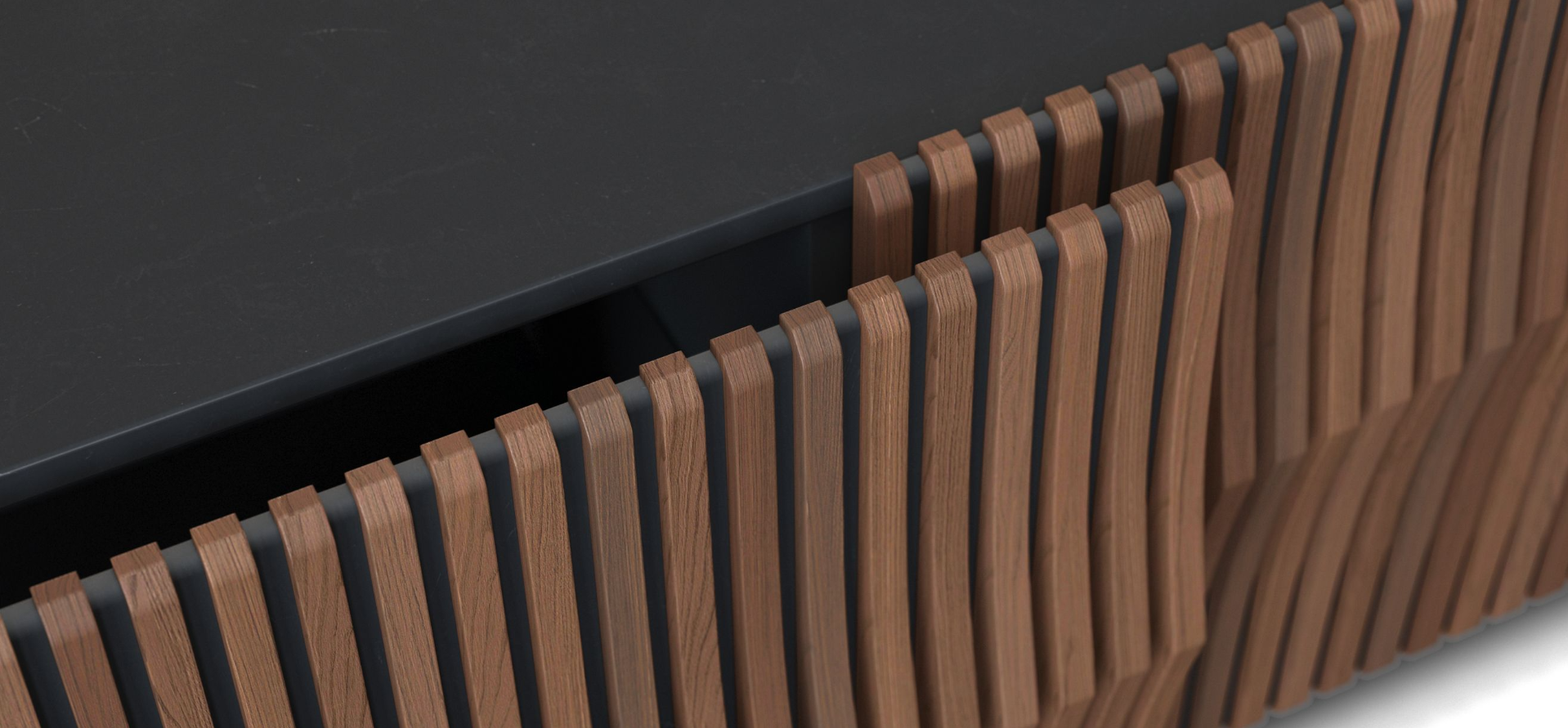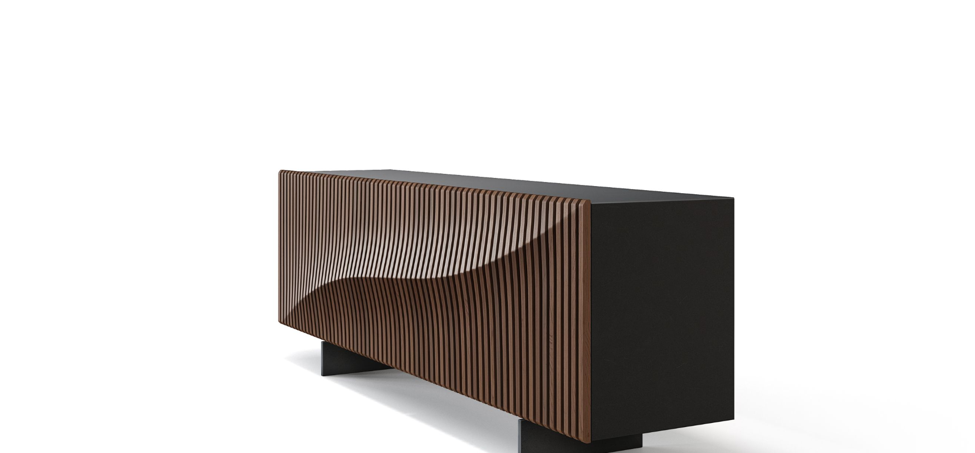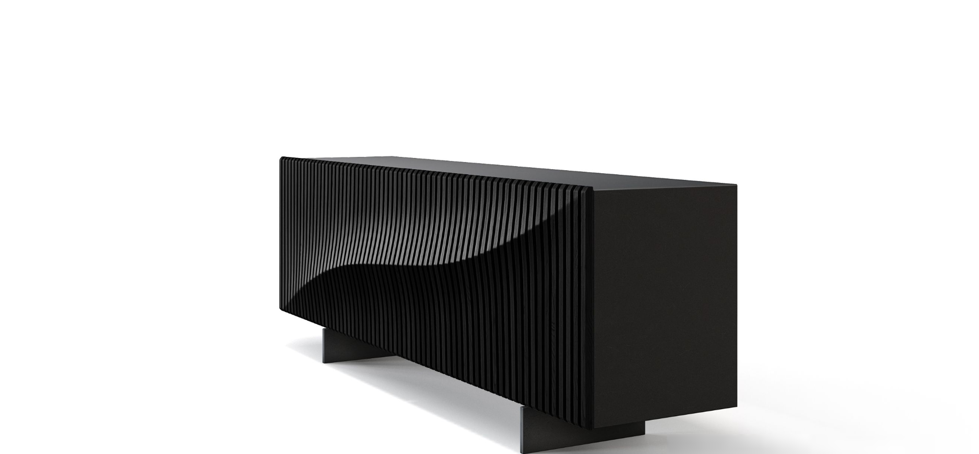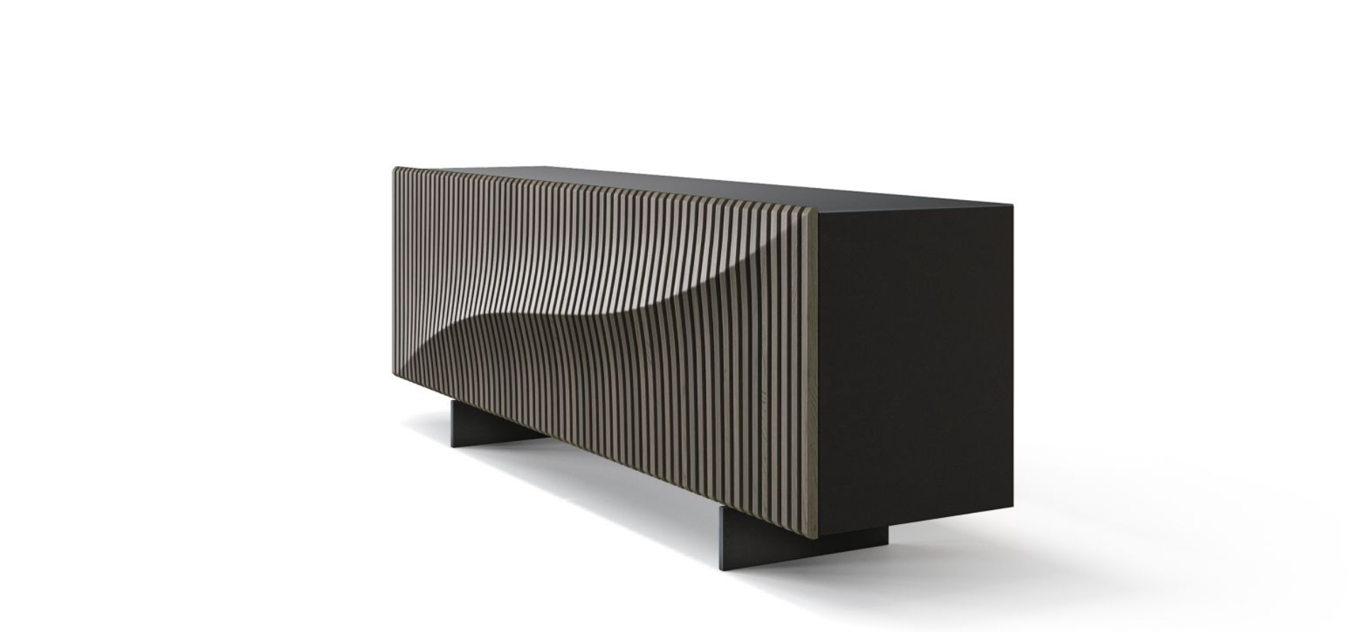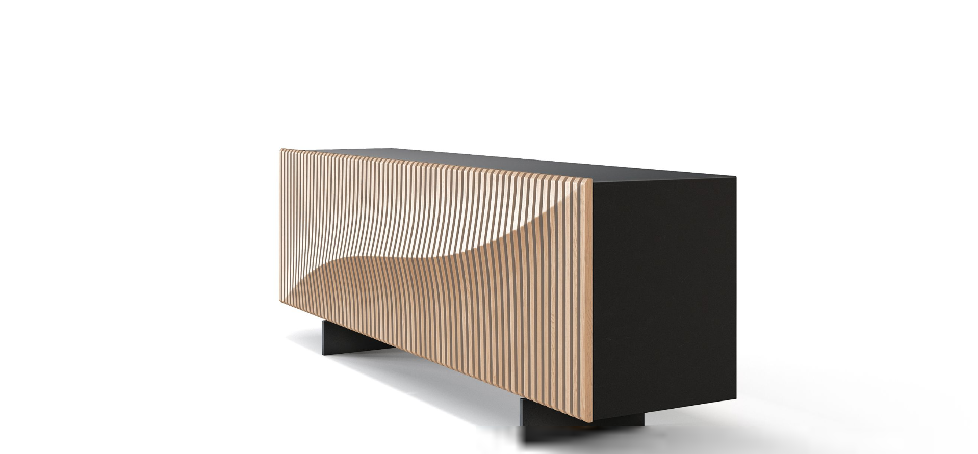 A wooden version of the iconic Speed Up buffet designed by CEO Furniture Factory, the wave that defines its facade is expressed through a series of 64 unique solid oak slats, all assembled by hand on a Black or White structure. A rhythm in 3 dimensions!