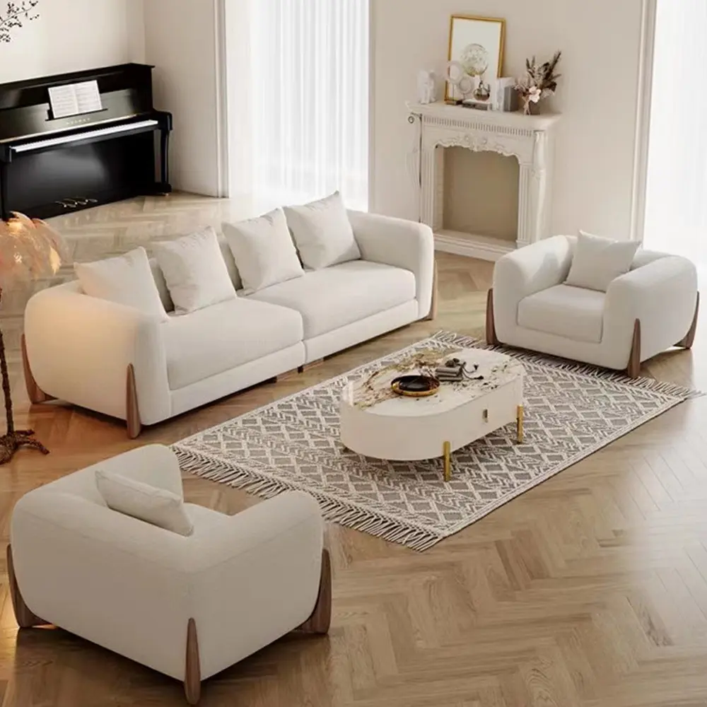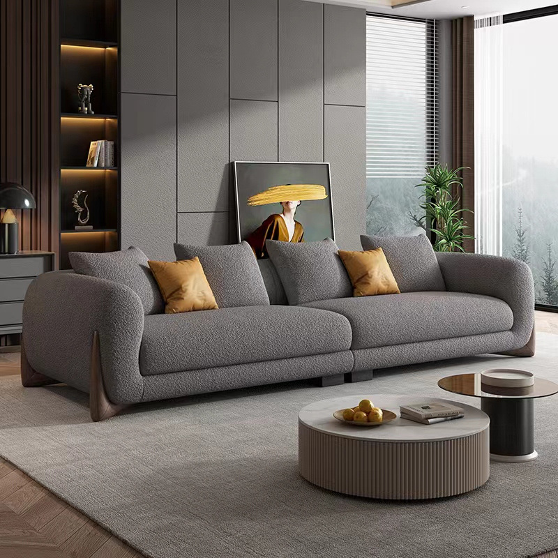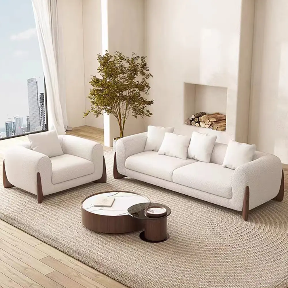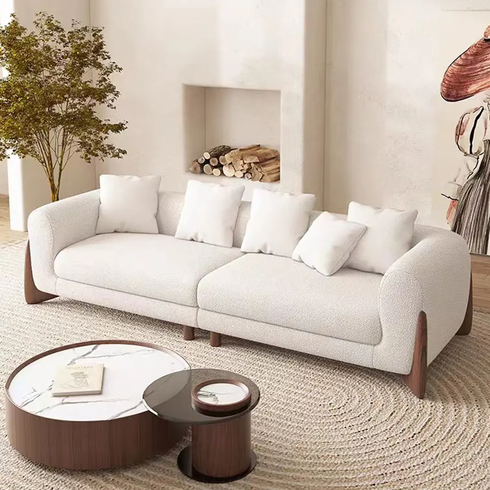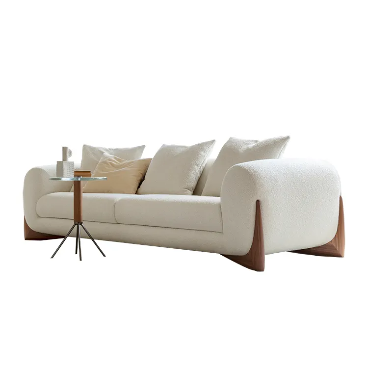 Italian minimalist fabric sofa small living room modern latex solid wood cream style lamb wool sofa