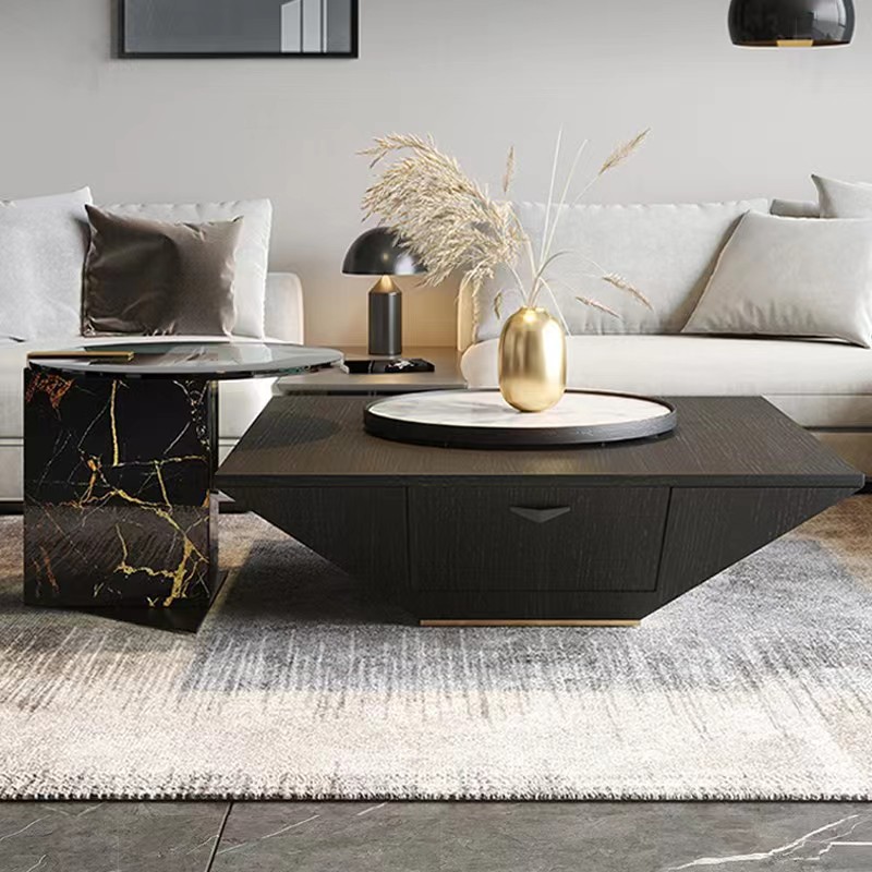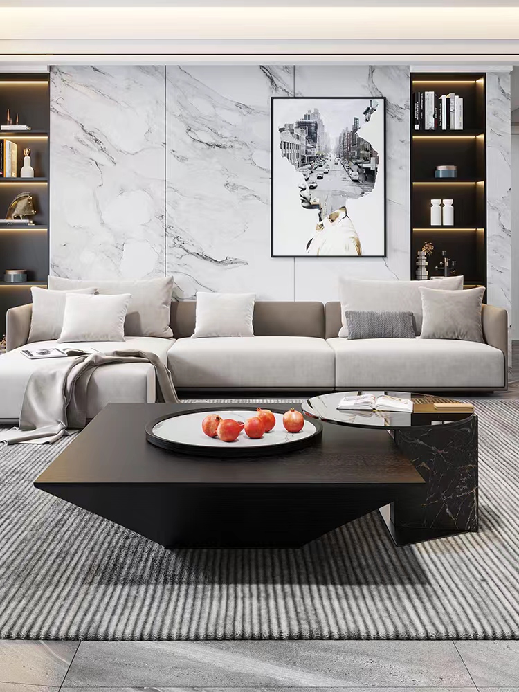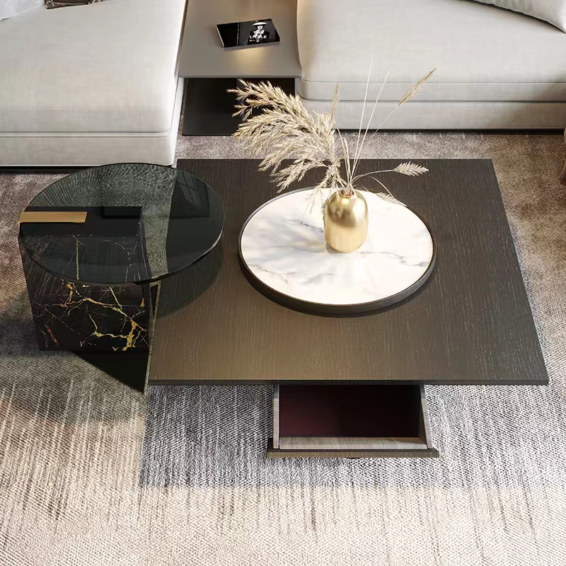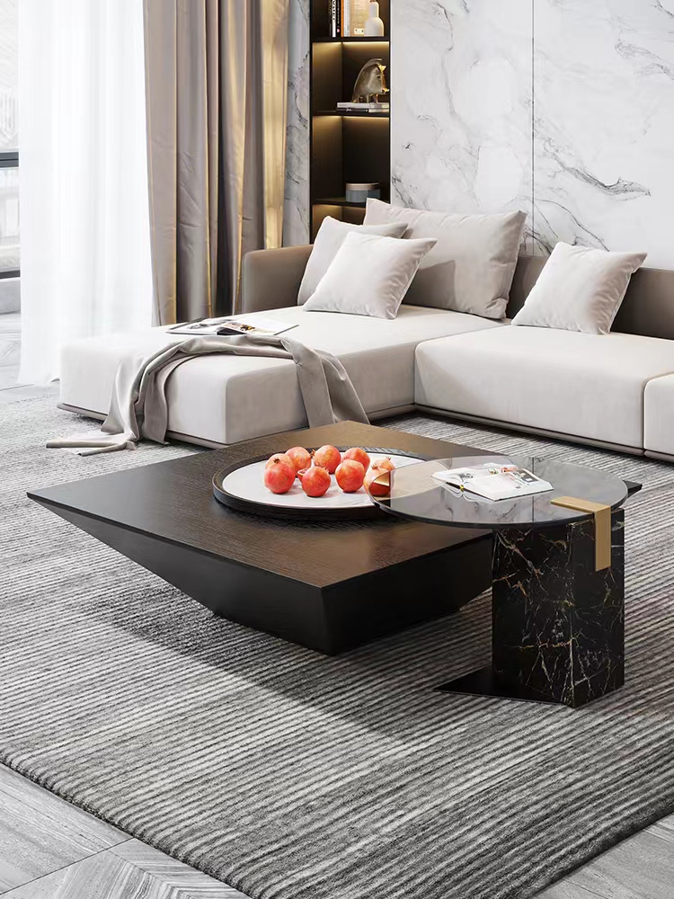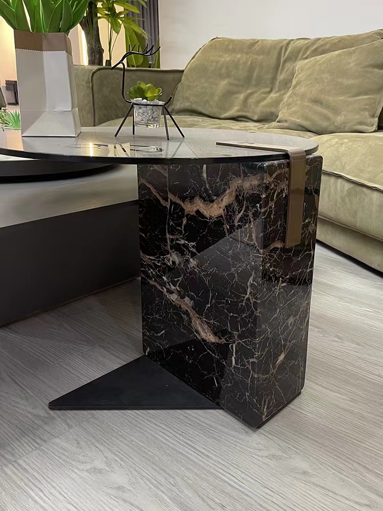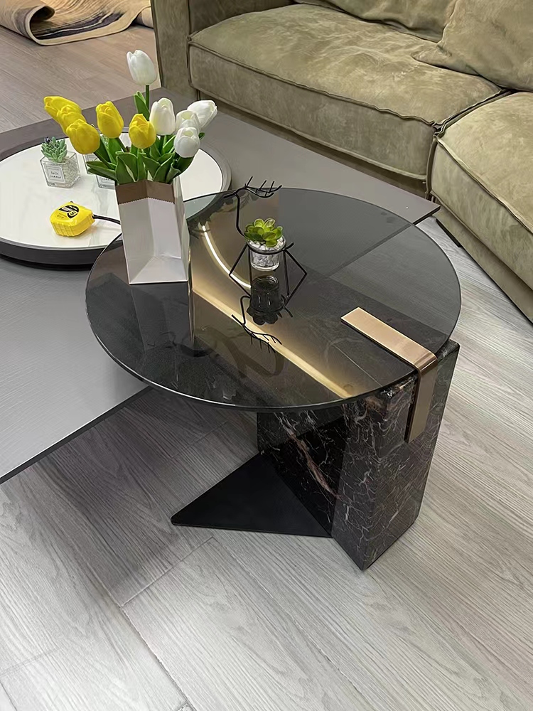 Small:Natural marble side table + tempered glass surface + carbon steel chassis