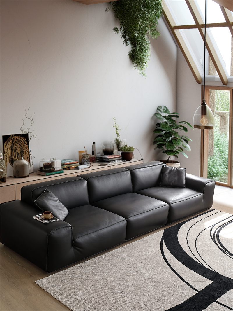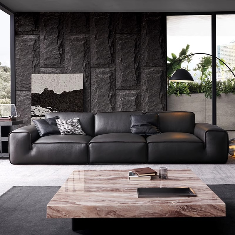 Custom Luxury leather sofa combination leisure suite sofa set living room furniture living room light luxury leather sofa modern sectional big black