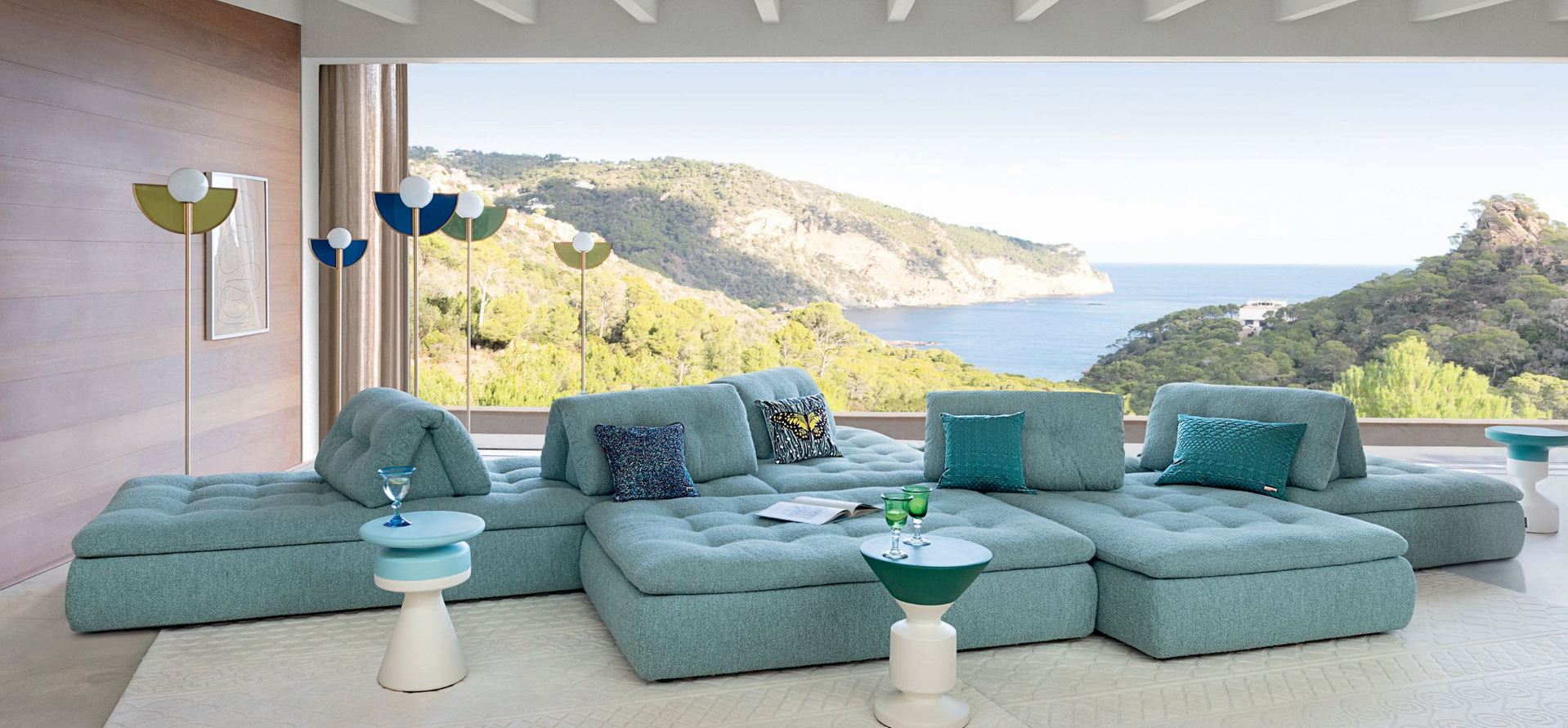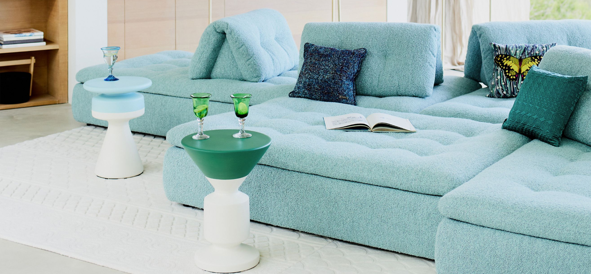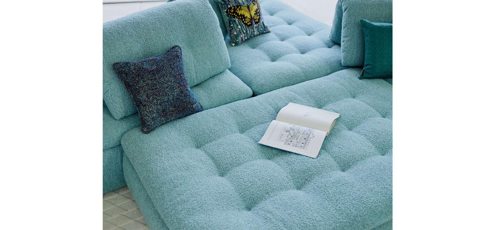 The CONVERSATION sofa allows you to place and move the backrests however you like. It includes various padded seat and back cushions that are completely modular, allowing you to create perfectly customized support for sitting, lying down, reading, or chatting.