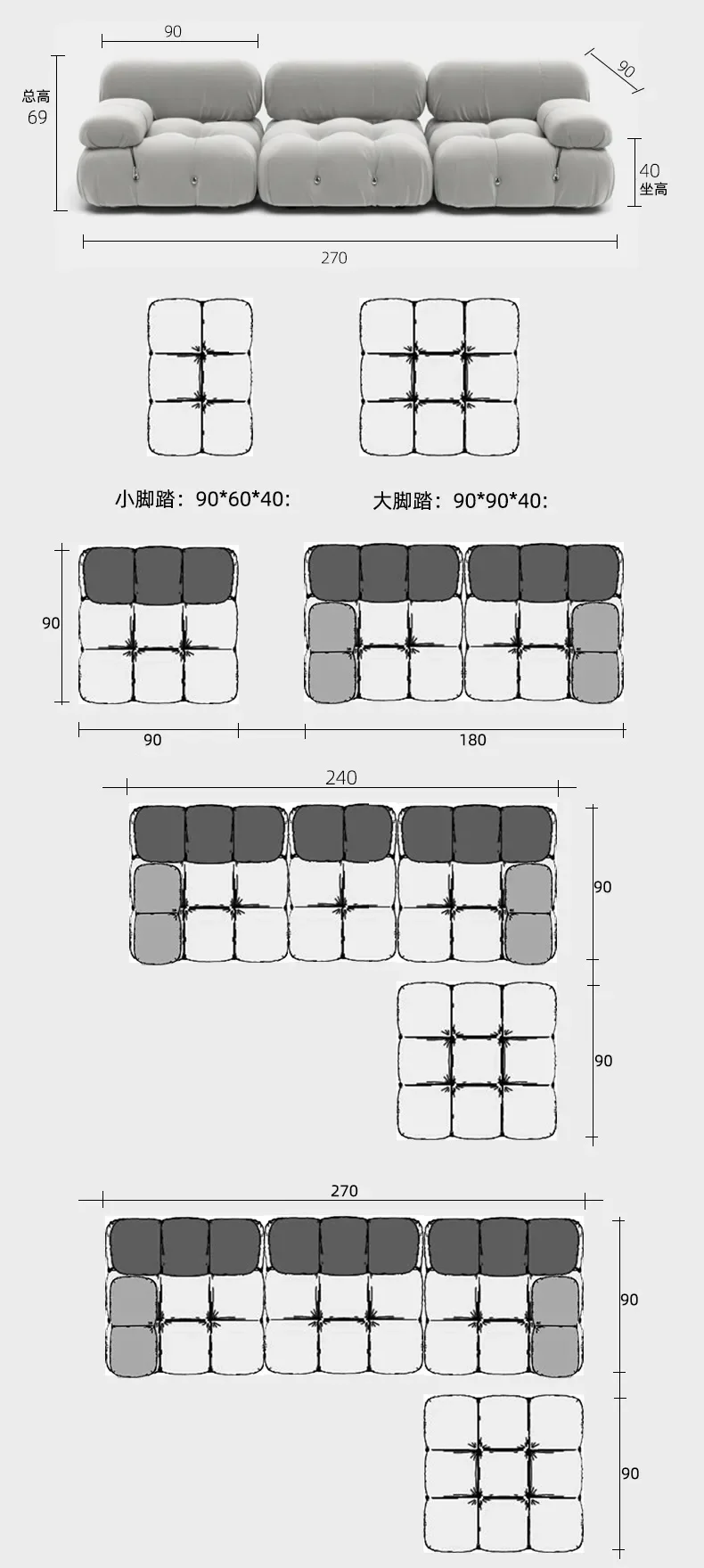 Size: | 1+2+3 seats or customized size | Place of origin: | Guangdong, China |